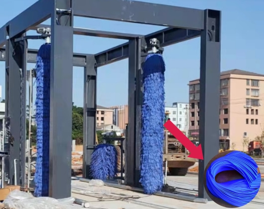通过式大巴洗车机主要是利用超软耐磨毛刷,和高压水来清洗车辆,通过电脑感应系统进行自动化检测车辆,分析车辆的款式和外形,并采用毛刷和高压水的最佳适合角度,对车辆不同的外观进行快速的清洗作业,避免对车辆外观造成的损害,提高了车辆的清洗速度。
